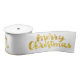 Gold Merry Christmas Script Calligraphy on white Satin Ribbon
