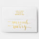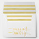Gold and White Merry and Married | Holiday Printed Envelope. Elke Clarke © Gold handwriting script typography. Gold foil on text and gold and white striped pattern on inside flap is a printed photo effect only. More styles and colours available in our shop. www.zazzle.com/epclarke