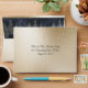 Faux gold metallic with deep blue background and faux fairy pine trees on back flap. Return address on bottom. Simple and yet so beautiful and elegant. Make a statement with this chic envelope. All your guests will love receiving their invitation in such a lovely envelope. Great for weddings, Christmas, New Year’s.