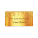 A faux gold metallic looking background. Decoreted with faux glitter drips. With the text: This book belongs to. Template for a name, a modern dark brown coloured hand lettered script.
