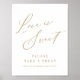 Modern script minimalist wedding love is sweet take a treat sign in gold colour, simple and elegant.