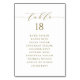 Customizable table number seating plan. It features a gold whimsical script and classic typography. Personalize by adding your own details. This minimalist table seating plan is perfect for weddings, baby showers, bridal showers, birthdays, and so much more.