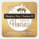 Modern honey label on gold background with “Honey" written in Vintage stylized font.