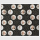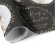 Christmas gift wrapping paper feature modern Merry Christmas script and botanical leaves wreaths, with personalized family name and 6 photos in black and gold. simple and elegant.