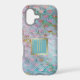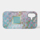 This unique case combines traditional art deco with a pretty marbling effect that results in a modern, chic design. Colours used include aqua blue, violet pink, and gold. A slight distressing adds extra interest. At the centre is a double gold lined aqua banner with your monogram in matching gold.