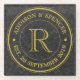 Gold Monogram Black Leather Wedding Anniversary Glass Coaster