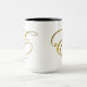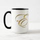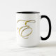 Letter E in gold script for mugs and steins. Add photos, text or background to customize.