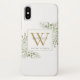 Elegant watercolor floral greenery monogram name iPhone X case featuring a gold monogram initial. Designed by Thisisnotme©