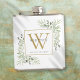 Gold Monogram Elegant Modern Greenery Hip Flask