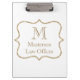 A beautiful gold and white monogrammed clip board for your business. Add your initial and your name.