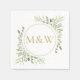 Gold Monogram Initials Greenery Watercolor Foliage Napkin