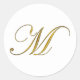 Gold letter M in Edwardian Script for envelope seals, stickers, labels or craft projects. Change the background colour, or resize the M to use on any size or shape sticker.