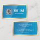 Gold Monogram | QR Code | Blue Geometric Business Card