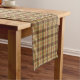 Table runner with a gold, moss green, and dark red plaid pattern with ivory highlights, inspired by French country cottage decor. A Plaidwerx original tartan design. Matching placemats and cloth napkins available.