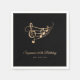 Editable elegant 60th birthday napkins featuring a wavy stave with music notes and a treble clef in faux gold on a black background, complemented by modern script typography. Perfect for adult birthday parties, musical events and music lovers. Customize it with your own text and make use of the editing tool to adjust the font size and placement. Should you require any help with customization, please feel free to message us on Zazzle.