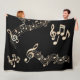 This stylish blanket features a musical theme. Gold sheet music notes are whimsically placed across a black background. It's a perfect gift for the musician in your life.
