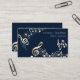 This stylish business card features a musical theme. Gold sheet music notes are whimsically placed across a navy blue background. It's a perfect for a professional musician, piano instructor, guitar teacher, or instrument store.