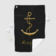 A classic black background and a faux gold anchor as decor. Template for a name or text written with a maritime style rope font, golden coloured letters.