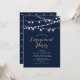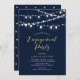 Celebrate your special day with this stylish modern engagement party invitation template. This design features beautiful string lights and typography in a gold & navy blue colour theme. More matching invitations and party supplies are available at my shop BaraBomWedding.