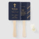 Gold navy blue elegant typography Wedding Program Hand Fan
