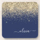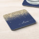 Gold Navy Blue Glitter Script Monogram Girly Name Coaster