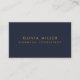 Simple, stylish and elegant business card design in modern typography in gold with a clean minimalist design on a navy blue background. The name, title and contact details can be easily personalized for a unique and professional design statement to enhance your business presence.
