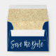Navy Blue and Gold Faux Glitter and Sparkle Save the Date White Script Envelopes are perfect for a modern and elegant Save the Date Card. These Baby Shower, Bridal Shower, Bachelorette Party by Mail, Wedding or Delay the Date Envelopes are perfect for that event or party that needs to moved to a new date.
