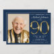 Gold Navy BlueSurprise 90th Birthday Invitation. Prepare for an exquisite surprise with our Elegant Navy Blue and Gold milestone birthday invitation design. The classic combination of navy blue and gold sets the tone for a celebration dripping in sophistication. The simplicity of the design adds an air of understated elegance, ensuring that the focus remains on the celebratory moment. Elevate the excitement with a personalized touch by incorporating a custom photo, making this invitation a keepsake of cherished memories. Join us for a night of simplicity and surprise, where the refined colour palette and personalized details promise an unforgettable milestone celebration that's both timeless and elegant.