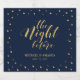 This chic navy blue & gold rehearsal dinner label will add stylish detail to your special day. The design features modern gold script "the night before" and confetti background. You can personalize the napkin with your name and event. Matching party invitations and stationeries are available in my shop BaraBomWedding.