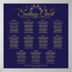 This beautiful 11 table wedding seating chart will make it easy for your guests to find their assigned seats at your reception. Features a design that is simple yet elegant with gold text on a navy blue background and a gold faux foil vintage floral filigree border.