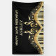 Elegant gold and beige notes, keyboard and treble clef on black background