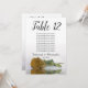 These beautiful table number cards will make it easy for your guests to find their seats at your wedding reception. They feature a simple yet elegant design with script calligraphy lettering and a single long-stemmed gold ochre or mustard yellow coloured rose lying on its side reflecting in water. The card includes a seating chart with 10 names. There is also space for the couple's names and wedding date. This card is available in a variety of sizes and is larger than our standard table number cards.