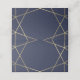 These modern wedding place cards feature a faux gold geometric design, blank in the centre, on a navy blue background.