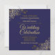 This beautiful wedding invitation features a simple yet elegant design of gold text on a navy blue background with gold faux foil floral borders. Welcome your guests to share your special wedding celebration day with these gorgeous invitations featuring gold text. A wedding is a once in a lifetime celebration of love, friends and family. Make your nuptials truly memorable with these pretty and stylish invitations. This invite is fully customizable, so you can change the text to suit your situation and needs. Designed to coordinate with our Gold & Navy Elegant Wedding Suite