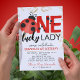 Gold Glitter One Lucky Lady Watercolor Ladybug Double Sided First Birthday Party Invitations (Includes Envelopes). Or available for digital download.