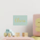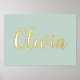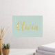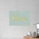 Poster featuring your custom name in gold or silver foil on a pale sea green or custom colour background.