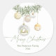 Add a touch of sophistication to your holiday mail or gifts with this elegant Christmas sticker featuring gold and white glass ornaments hanging from lush watercolor greenery. The graceful script lettering gives it a timeless, festive look — perfect for sealing envelopes, decorating packages, or adding a refined finish to holiday favors.