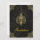 Gold very ornate baroque style chandelier design over black background. Fully customizable invitation template.