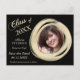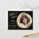 There's an elegant gold paint brushed circle frame for your photograph on the right side of this "Save the Date" graduation announcement, with your custom text in matching gold at the left. Everything is placed on a dramatic black background. The back of the card has an additional text field if needed. All the text on the front is also easily customized.