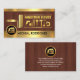 Overleaf, the same timber theme is used with the gold logo at the top followed by your prestigious name, the contact details and a slogan caption to publicize your services.