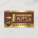 An exquisite brown timber cover is encapsulated by gold stripes at the upper and lower rims of the card. It features a gold paint brush painting out a set of gold handyman tools. Here lies the business name "HANDYMAN SERVICE" which you can change, in faux gold. At the base is a gold home landscape logo you can use alongside your prestigious name.