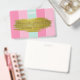 Precious, luxury and elegant: gold glitter paint brush on colourful geometric pink and turquoise stripes. Easily to change the text to your needs.