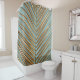 Closeup view of gold painted natural tropical date palm leaf on light muted cyan blue background. Decorative diagonal geometrical floral pattern design.