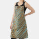 Closeup view of gold painted natural tropical date palm leaf on light muted cyan blue background. Decorative diagonal geometrical floral pattern design.