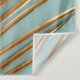 Closeup view of gold painted natural tropical date palm leaf on light muted cyan blue background. Decorative diagonal geometrical floral pattern design.