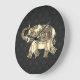 Gold Paisley Floral Elephant,Black Damask Large Clock