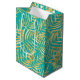 Gold Palm Leaves on Turquoise Medium Gift Bag