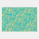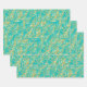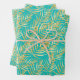 Gold Palm Leaves on Turquoise Wrapping Paper Sheet