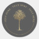 Round Sticker with classy gold palm tree image. Perfect for travel industry.