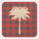 Gold Palm Tree on Red Buffalo Plaid Square Sticker